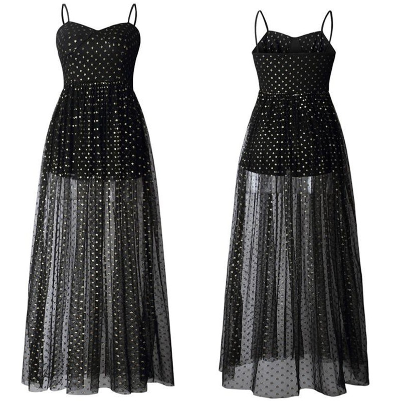 Original vestido corsé de mujer con tirantes y falda larga transparente.