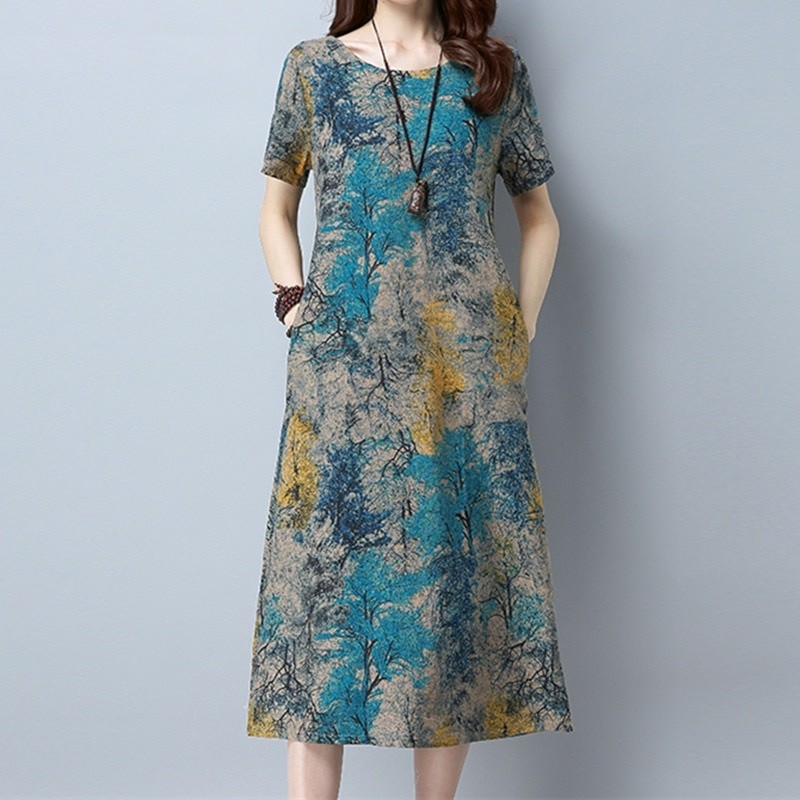 Cómodo vestido túnica de largo midi con prácticos bolsillos.