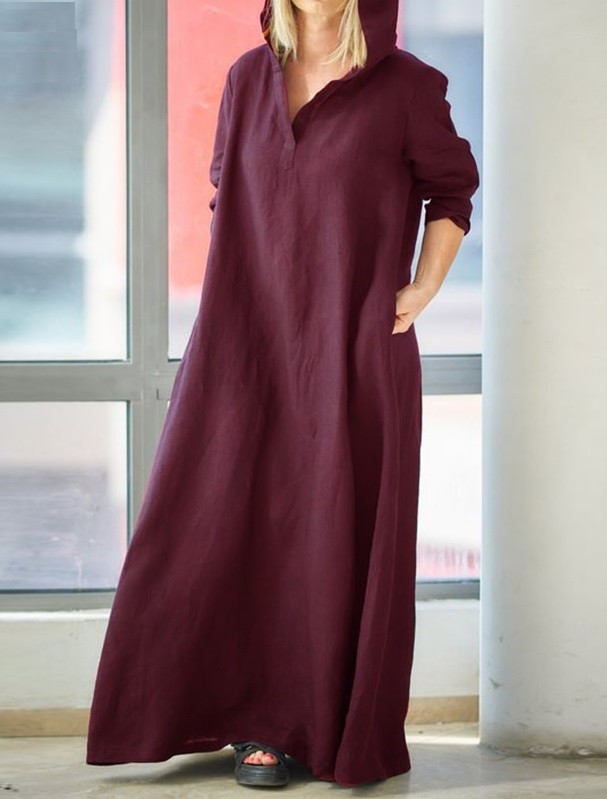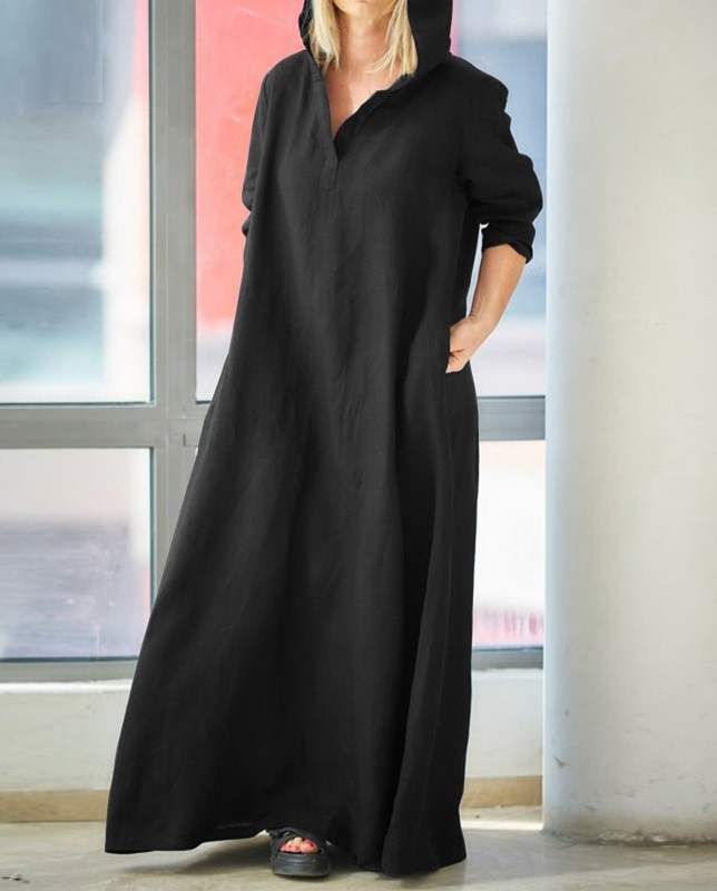 Vestidos largos y sueltos de algodón para mujer con capucha.