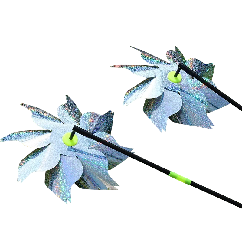 El ahuyentador está fabricado con material mylar, que es ligero y adecuado para su uso en condiciones exteriores. Gracias a su bajo peso, las aspas giran fácilmente con el viento, creando un movimiento continuo.