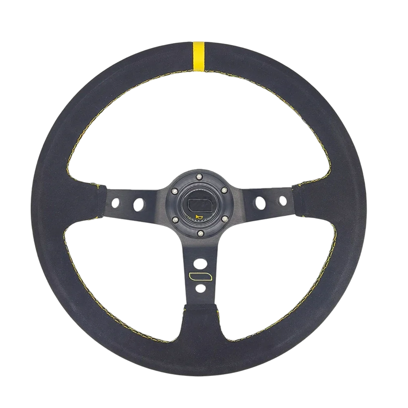 Su diseño llamativo y estructura resistente aseguran no solo una larga vida útil, sino también un aspecto deportivo en el interior de su coche. El volante tiene un tamaño compacto de 35 cm, lo que permite reacciones rápidas al conducir y mayor precisión en el control. Además, el material de ante proporciona comodidad incluso en viajes largos.