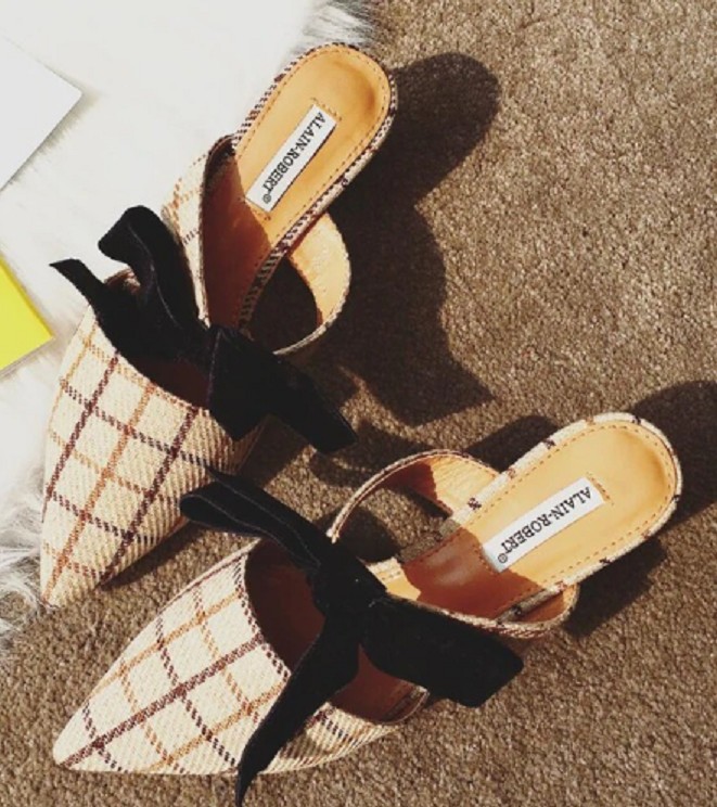 Consigue estas elegantes pantuflas con estampado de cuadros.
