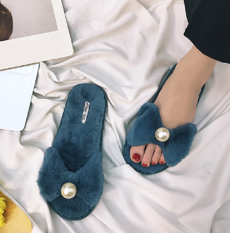 Estas preciosas pantuflas con lazo y perla son muy lindas.