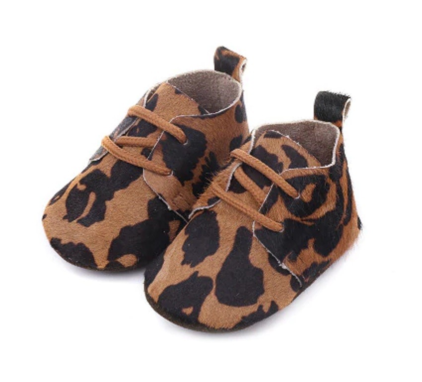 Estas zapatillas de cuero serán un gran accesorio de moda para el atuendo de tu hijo.