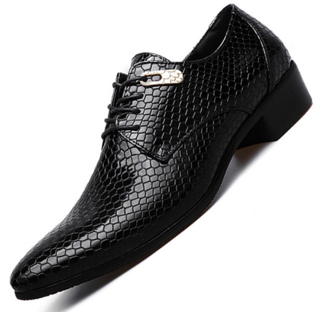 Estos modernos zapatos bajos estilo piel de serpiente para hombre combinan con cualquier atuendo formal.